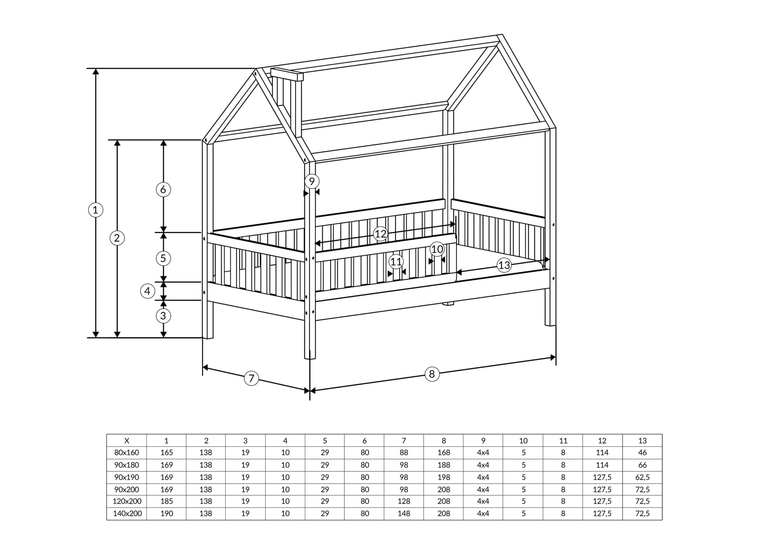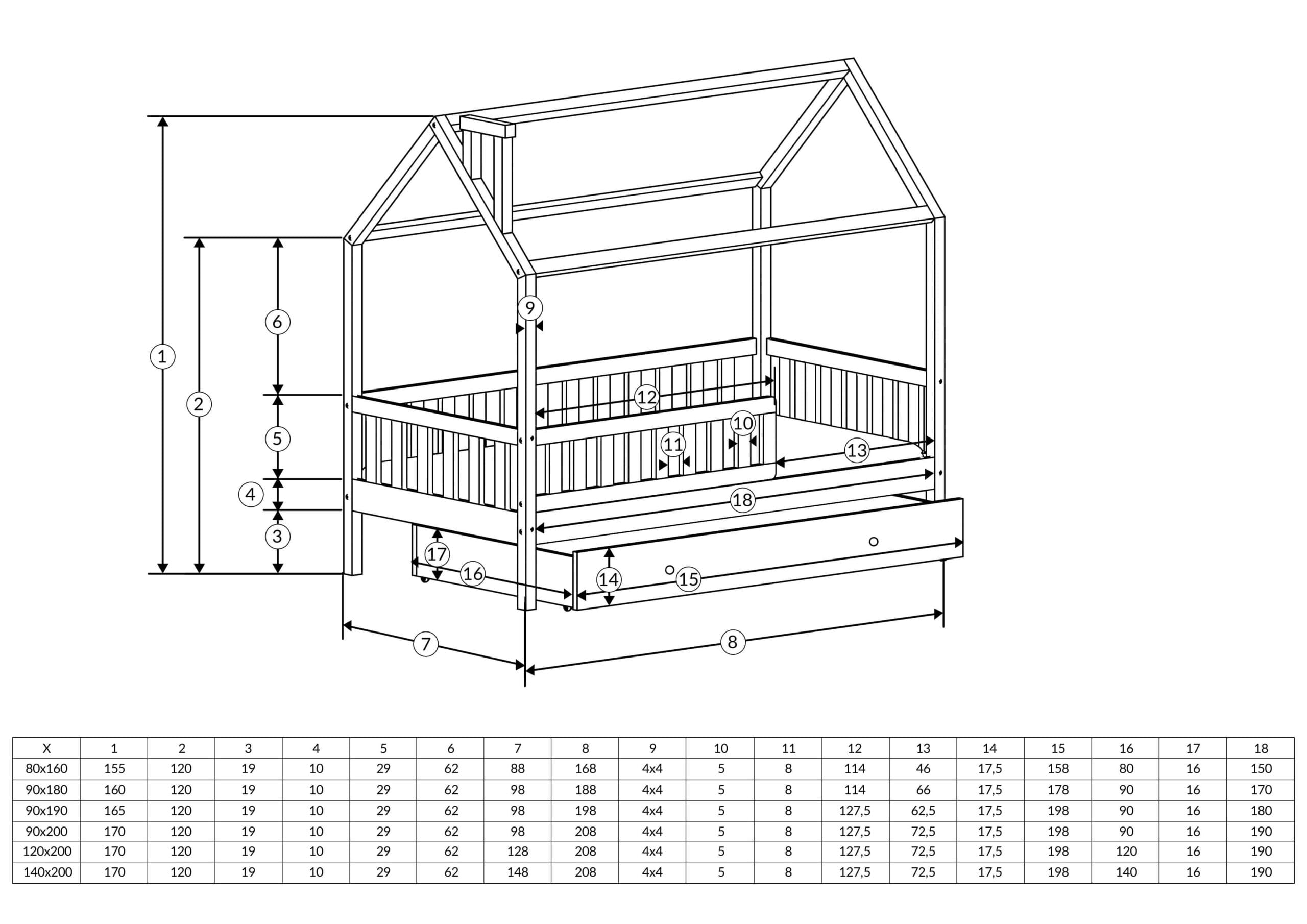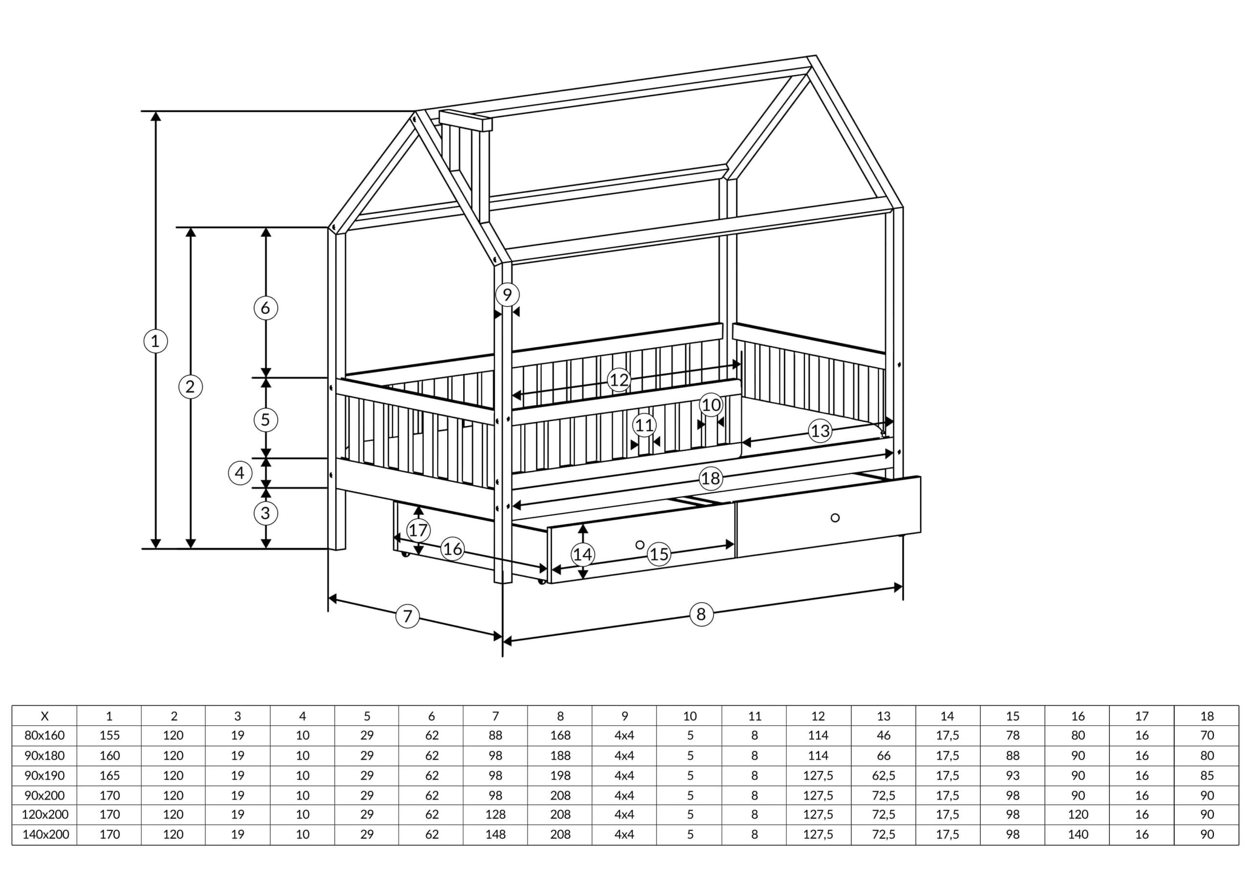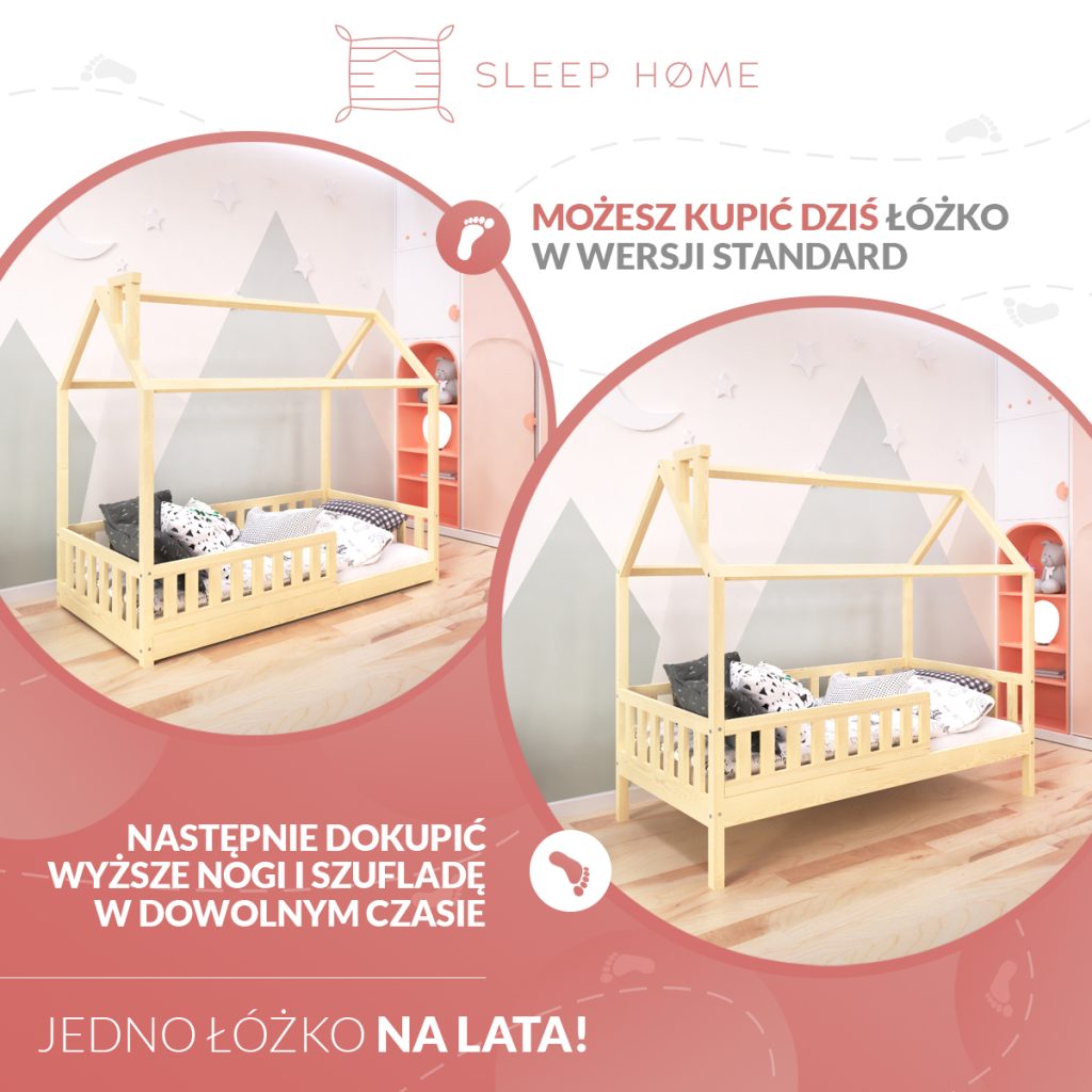 Solidna konstrukcja łóżka dla dzieci gwarantuje wyjątkową trwałość, co jest podstawą podczas zabaw dziecka. Łóżko dziecięce w kształcie domku zostało wzbogacone stylowymi barierkami, daszkiem czy kominkiem, które są funkcjonalne i dają możliwość kreatywnej zabawy. Elegancki i minimalistyczny wygląd łóżka dla dzieci RYŚ PLUS będzie pasować do wnętrz w stylu skandynawskim i sprawi, że spodoba się dzieciom, jak i rodzicom.