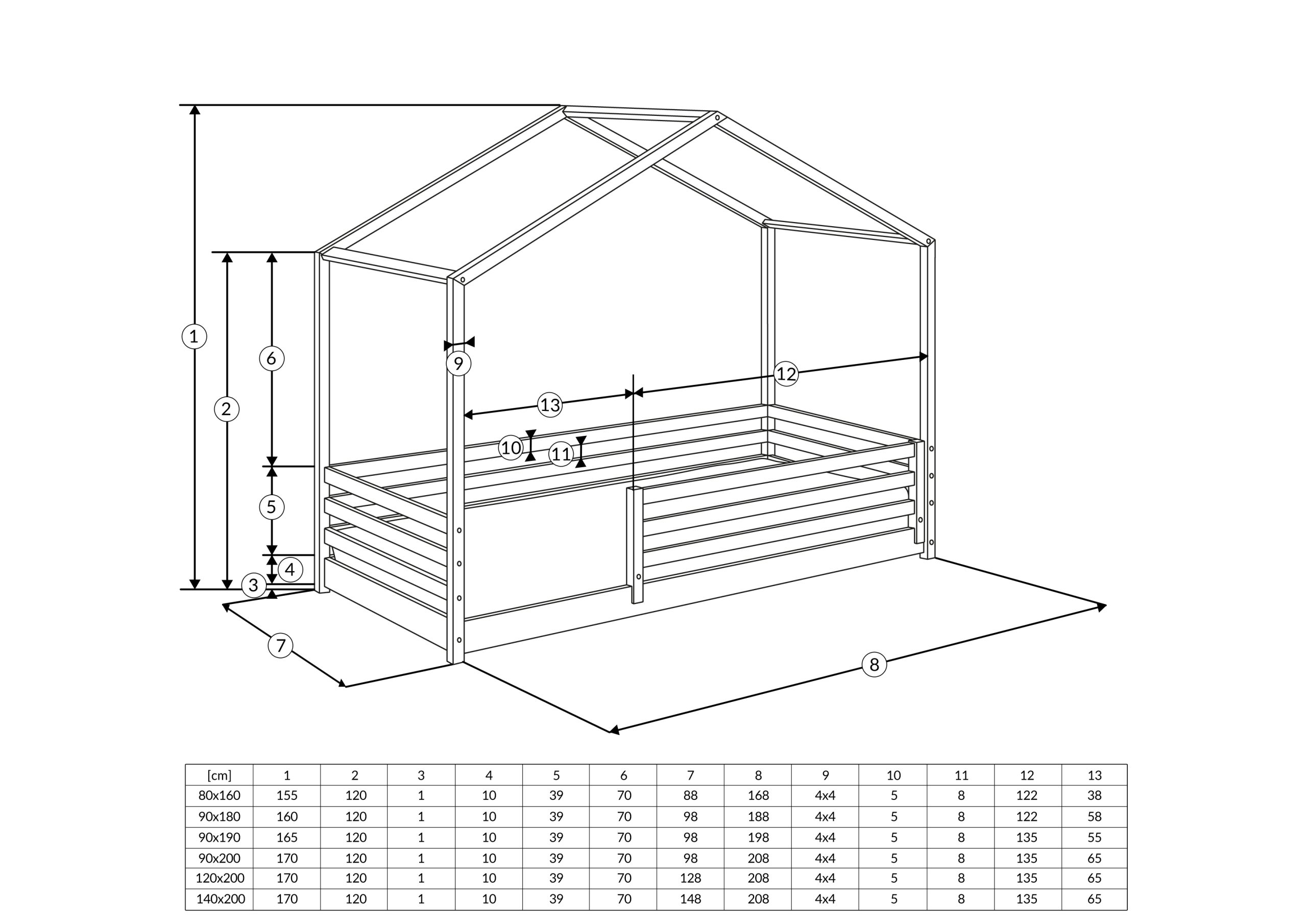 Łóżko domek dla dziecka na życzenie może występować w wielu rozmiarach: