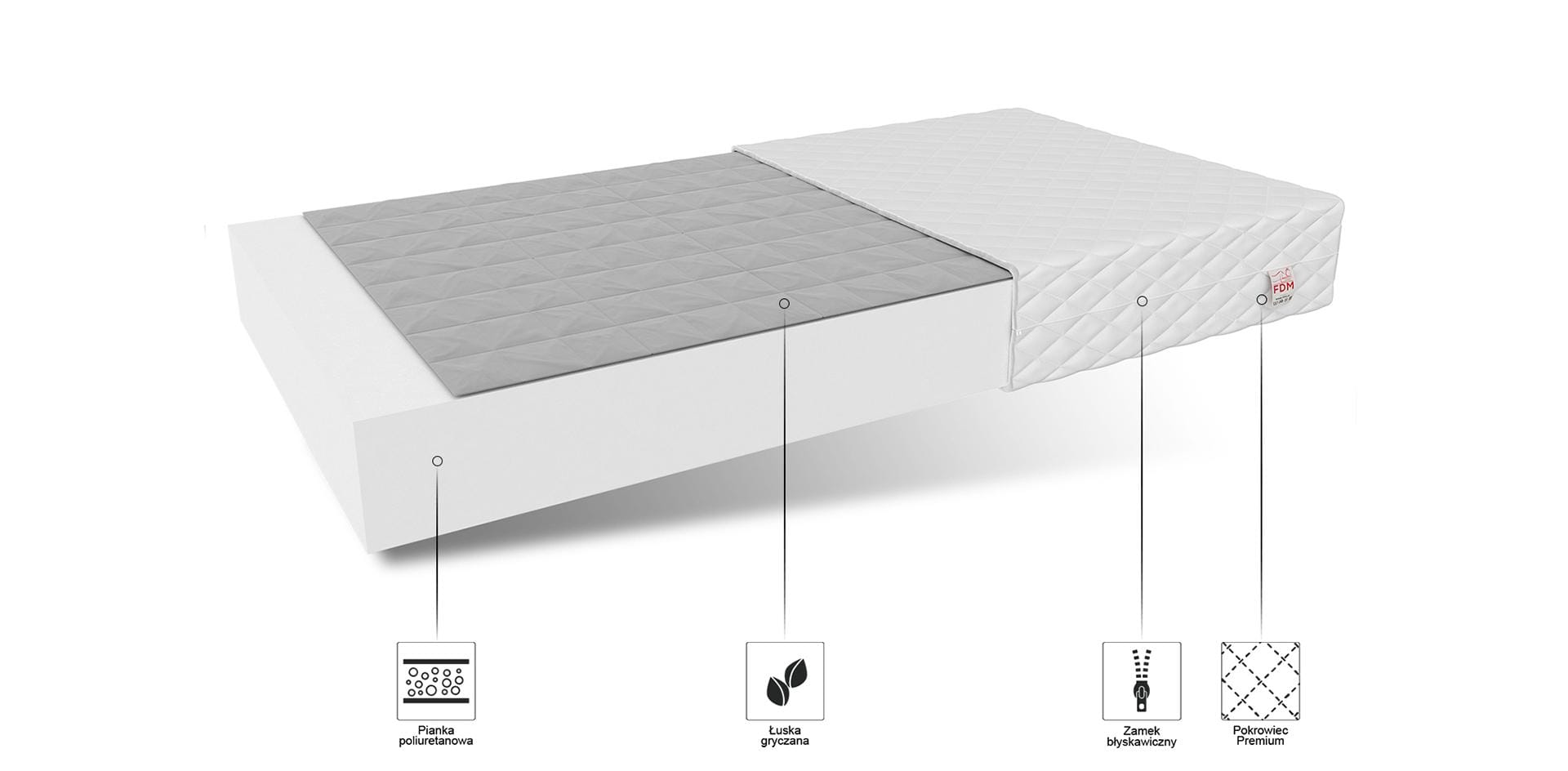 Pianka o podwyższonej wytrzymałości i dobrej przepuszczalności powietrza, zapewnia świetną izolację termiczną. Nie odkształca się, dzięki czemu materac jest bardzo wygodny i gwarantuje komfort spania. Wysoka jakość pianki zapewnia bardzo dobre podparcie dla kręgosłupa. Dobrze amortyzuje ruch drugiej osoby, więc jest świetnym rozwiązaniem dla par, oraz dla dzieci, których układ kostny jest bardzo delikatny.